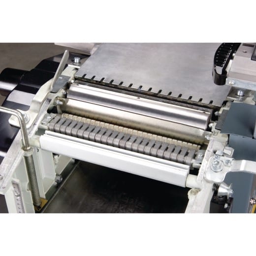 - Eine gummierte Auszugswalze schont beim Dickenhobeln die Oberfläche