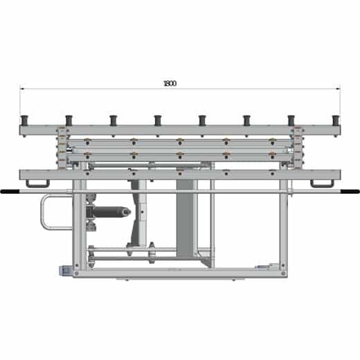 - Ermöglicht einer Person müheloses Laden von Platten auf den Plattformrahmen und Schwenken aus der vertikalen in die horizontale Position
