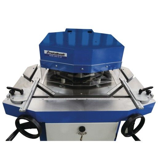 - Solider Tisch mit versenkten Skalen und T-Nuten für genaue Justierung der schwenkbaren Anschläge