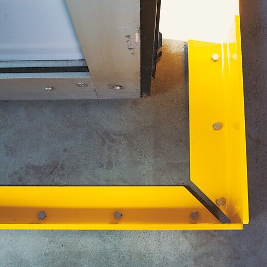 Häufig werden Lager- und Brandschutztüren beschädigt. Ursache: In der Sperrfläche im Rückfahrraum wurden Paletten/Gitterboxen abgestellt. Ebenso durch Staplerfahrer, die in diesen Bereich einfahren, während sich die Tür öffnet. Das kräftige, massive BLACK BULL Leitbord aus Stahl zum Aufdübeln sichert kritische Sperrflächen und vermeidet teure Instandsetzungen.