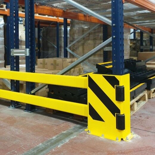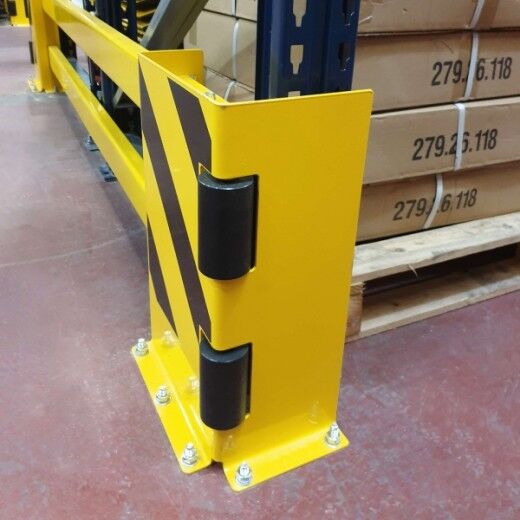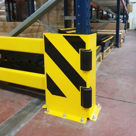 Die BLACK BULL Regalschutz-Planke B wurde speziell zum stirnseitigen Schutz von Regalen vor Anfahrschäden durch Stapler- und Rangierverkehr entwickelt. Die besondere Formgebung der Anfahrschutzwinkel erlaubt das seitliche Einschieben von zwei Stahl-Planken mit C-Profil. Die 300 mm breiten Schutzwinkel lassen ein Verschieben der Planken von bis zu 200 mm je Schutzwinkel zu. Somit kann jedes Planken-Set in der Breite bis zu 400 mm individuell angepasst werden. Ein Planken-Set B besteht aus zwei Anfahrschutzwinkeln (500 x 300 x 190 mm, 4 mm Materialstärke), zwei Planken (100 x 40 x 3 mm) und vier Klemmstücken.