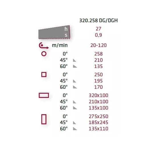 - Schnittgeschwindigkeit 1/2 20 – 120 m/min