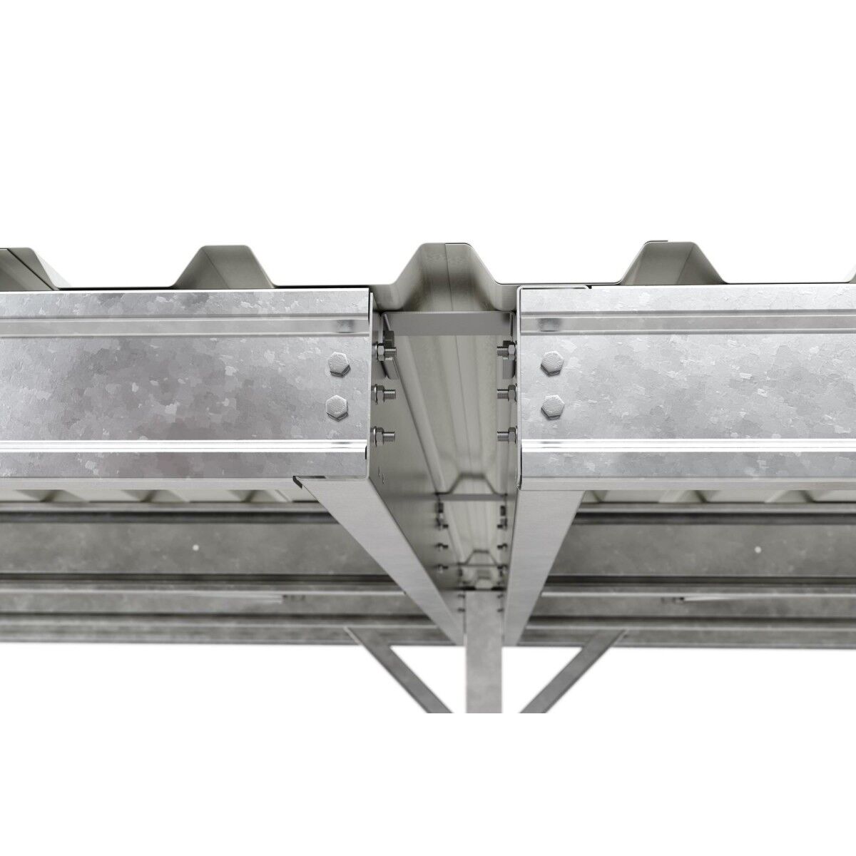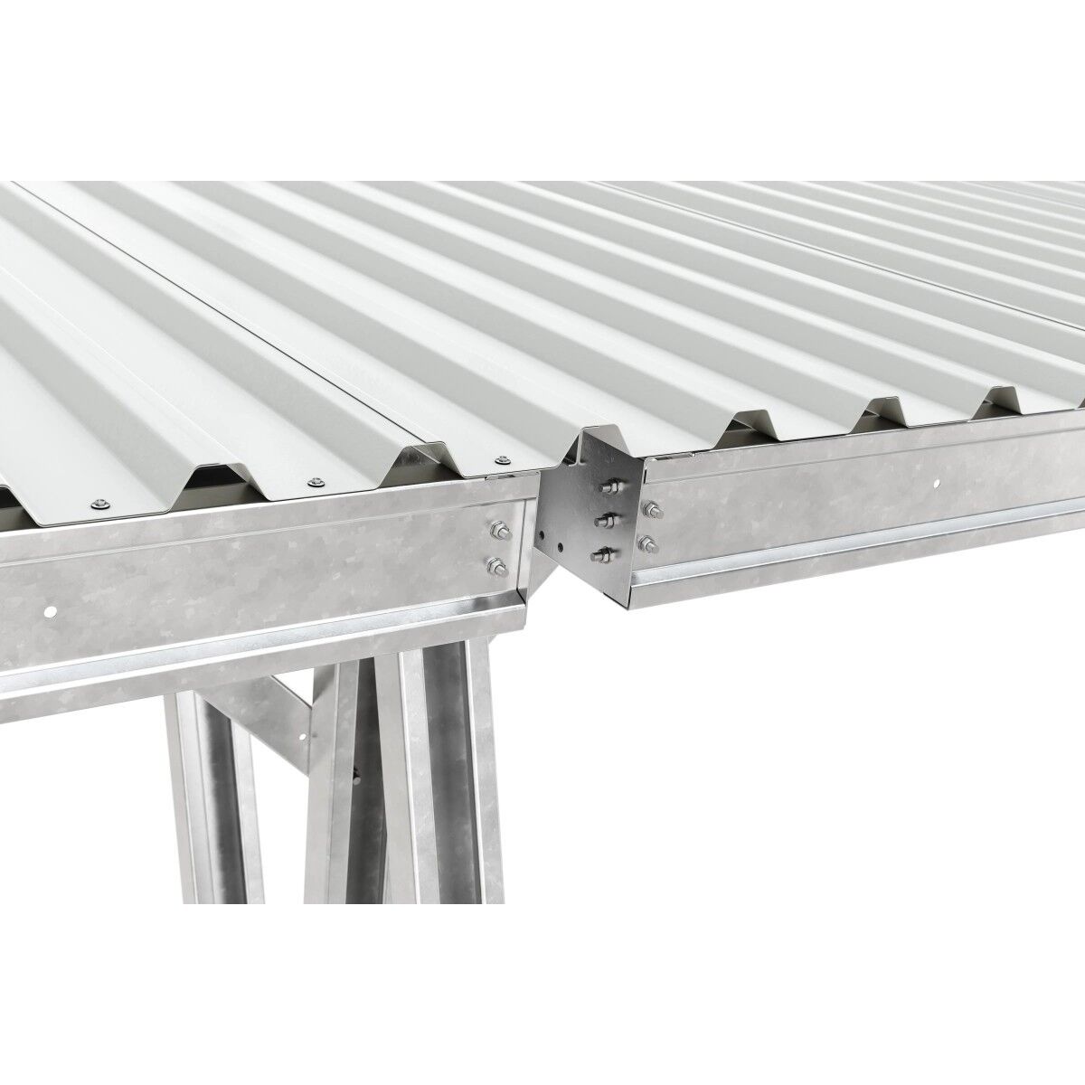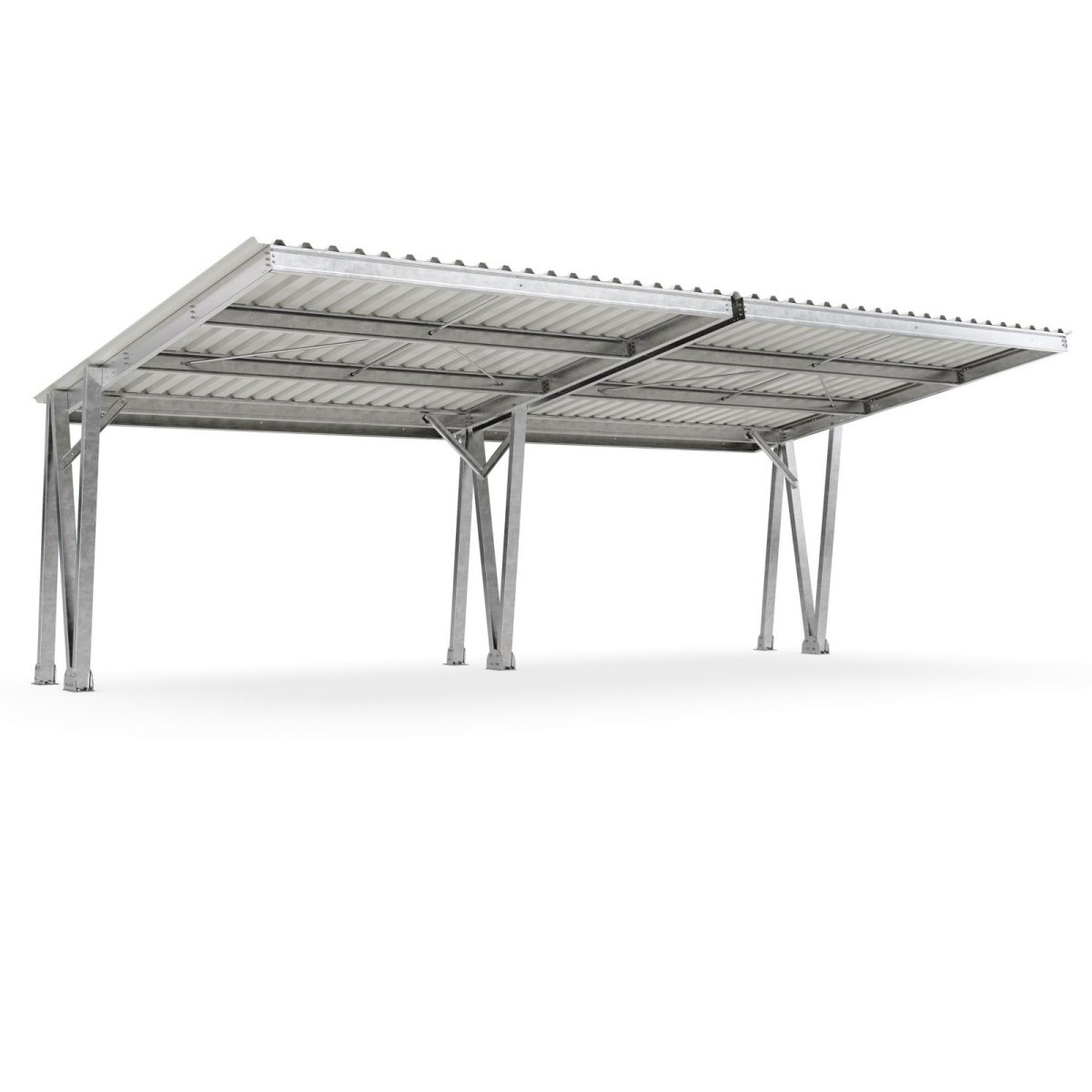 Dieses Set besteht aus einer Grundeinheit und einer Anbaueinheit. Diese Carport-Reihenanlage kann mit weiteren Anbaueinheiten weiter verlängert bzw. erweitert werden.