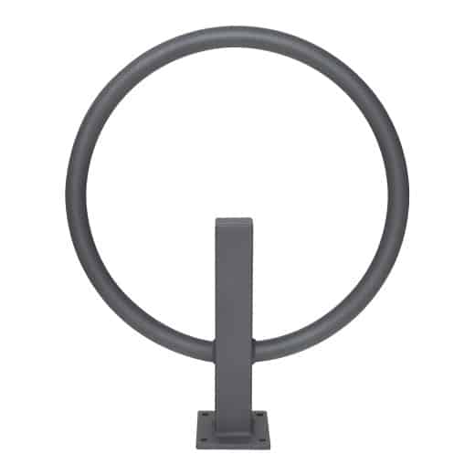 CITY-Anlehnbügel GIRO aus Stahl, feuerverzinkt und beschichtet. Kombination aus Rund- und Quadratrohr. Die Ringform strahlt angenehme Leichtigkeit aus.
