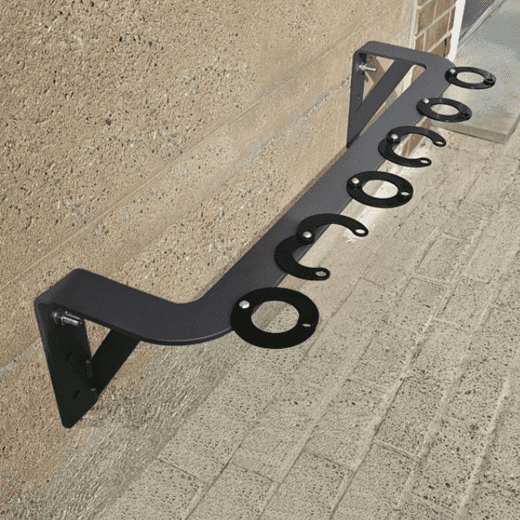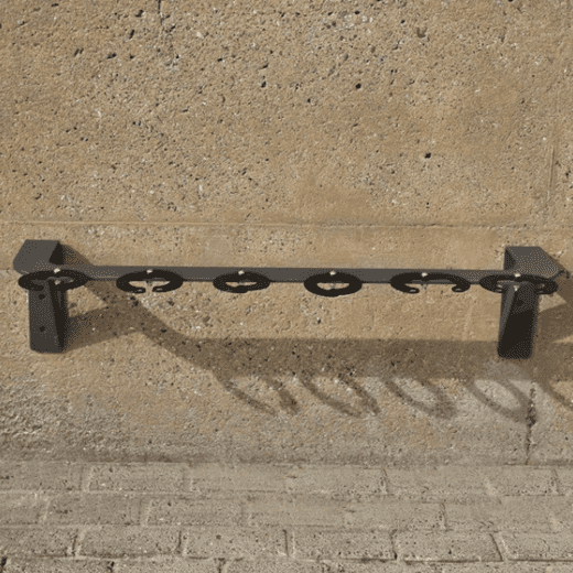 Der Scooter-Parker GILA bietet mit 6 Halteschellen viel Parkplatz auf wenig Raum. Er ist platzsparend und in der Höhe frei an der Wand montierbar. Modernes, urbanes Design. Hochwertige Verarbeitung aus gebogenem Flachstahl mit zusätzlichen diagonalen Streben für erhöhte Stabilität. Die Sicherung der Scooter erfolgt durch Vorhänge- oder Kabelschloss. Die Lieferung der Schellen erfolgt unmontiert (Schellen, Schrauben und Muttern zur Schellenbefestigung beigelegt). Die Schellen können jederzeit nachbestellt werden. 6 Dübel zur Wandmontage erforderlich (bauseits).