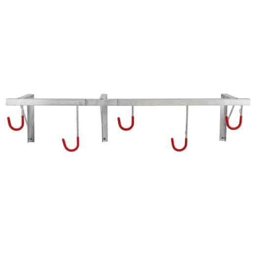 Der raumsparende CITY-Wandhalter CIELO ist darauf ausgelegt, Platz zu schaffen und Ordnung zu halten. Er eignet sich für Fahrräder aller Art unabhängig von ihrer Reifenbreite. Die Konstruktion besteht aus hochbelastbaren Stahlwinkeln mit massiven Aufhängehaken, die mit Stahl-Ring-Ösen als Diebstahlschutz ausgestattet sind. Die Aufhängehaken sind mit einer felgenschonenden Kunststoffummantelung in auffälligem Rot versehen. Dank der Verzinkung ist das System vor Korrosion geschützt. Die Haken sind abwechselnd 200 mm und 350 mm lang, und der Hakenabstand beträgt nur 350 mm, was eine höhenversetzte Aufhängung ermöglicht. Die empfohlene Befestigungshöhe beträgt etwa 2.000 mm (Wand- oder Deckenmontage möglich). Die Lieferung erfolgt im zerlegten Zustand. Sämtliches Montagematerial sowie eine detaillierte Anleitung sind im Paket enthalten.