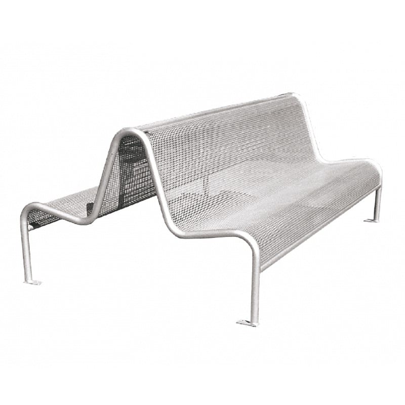 Die Bank besteht aus einem 40 mm starken Stahlrohr und ist mit einer Sitz- und Lehnefläche aus perforierter Stahlplatte in 2mm Stärke sowie 7 mm Bohrungen ausgestattet. Zur optimalen Korrosionsschutz wurde die Bank Ferrus behandelt. Dieser Prozess besteht aus drei Schichten, die nach dem Entfernen aller Unreinheiten durch Kugelstrahlen aufgetragen werden. Zuerst wird Verzinkung aufgetragen, gefolgt von einem Epoxyd-Primer und schließlich der Polyester-Pulverbeschichtung in RAL 9006.