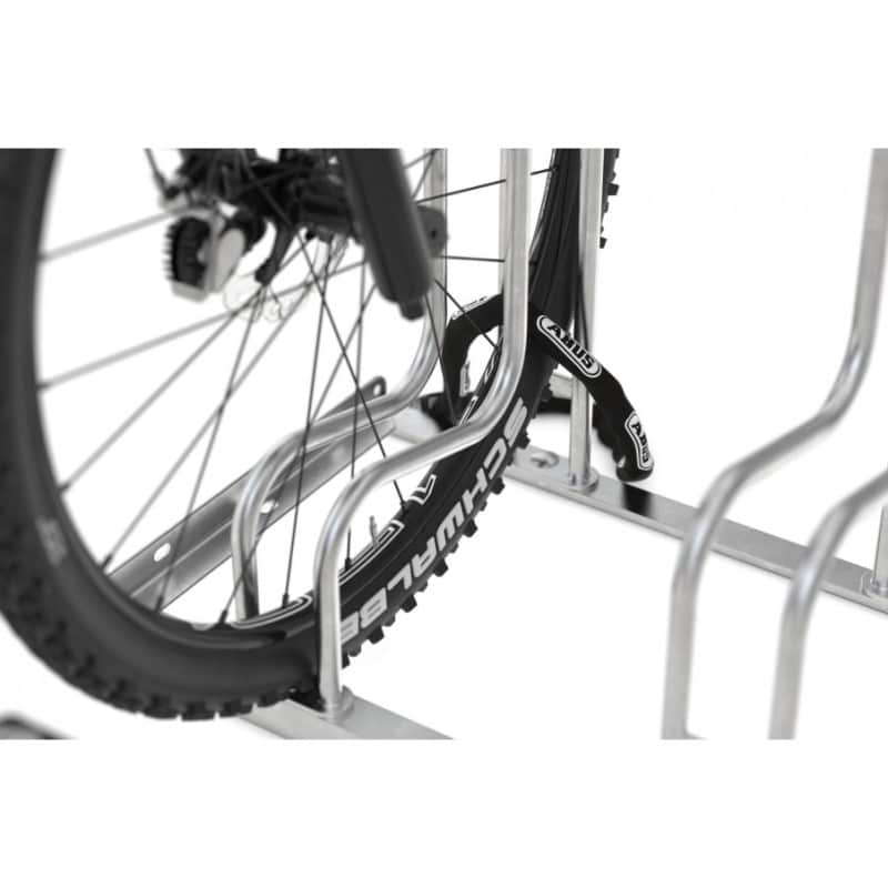 Der Standparker 4000 BR ist die ideale Lösung für Fahrradständer, die moderne Fahrräder mit breiteren Reifen aufnehmen müssen. Mit einer Reifenbreite von bis zu 64 mm oder 29-Zoll-Rädern bietet er ausreichend Platz für Fahrräder aller Art. Die hohen Einstellbügel verhindern ein Umknicken der Fahrräder und schützen die Felgen vor Beschädigungen. Gleichzeitig bieten sie eine Anschlussmöglichkeit für Schlösser, um den Diebstahl von Fahrrädern zu verhindern. Die robuste, korrosionsgeschützte Stahlkonstruktion sorgt für eine lange Lebensdauer und die hohe Qualität des Standparker. Der Umknickschutz durch die hohen Einstellbügel schützt die Fahrräder zusätzlich. Dank seiner optimalen Maße eignet sich der 4000 BR perfekt für öffentliche Fahrradparkanlagen sowie für den Einsatz in Unternehmen oder Schulen.
