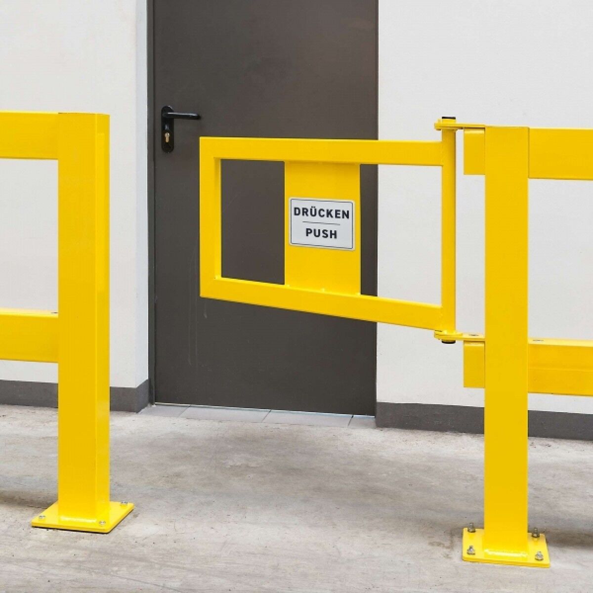 BLACK BULL Geländer-Tür aus Stahl mit eingeschweißter Schutzblende für erhöhte Stabilität, bessere Sichtbarkeit und zum Aufkleben von Warnhinweisen. Abgestimmt auf das Rammschutz-Geländer XL und das schlankere Geländer S-Line. Die Tür ist für beide Geländersysteme identisch, nur das Befestigungsmaterial ist unterschiedlich. Die einzigartige, neu entwickelte Beschlagstechnik macht die Geländer-Tür sehr variabel in der Anwendung.