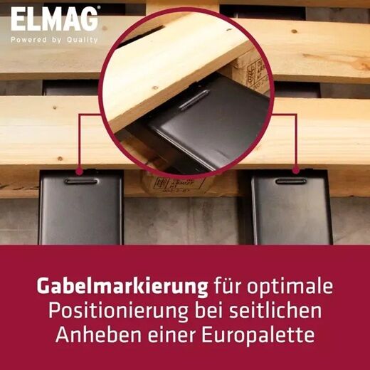 - Der robuste Anschlagblock an der Gabelspitze bewirkt einfaches Einfahren an Paletten