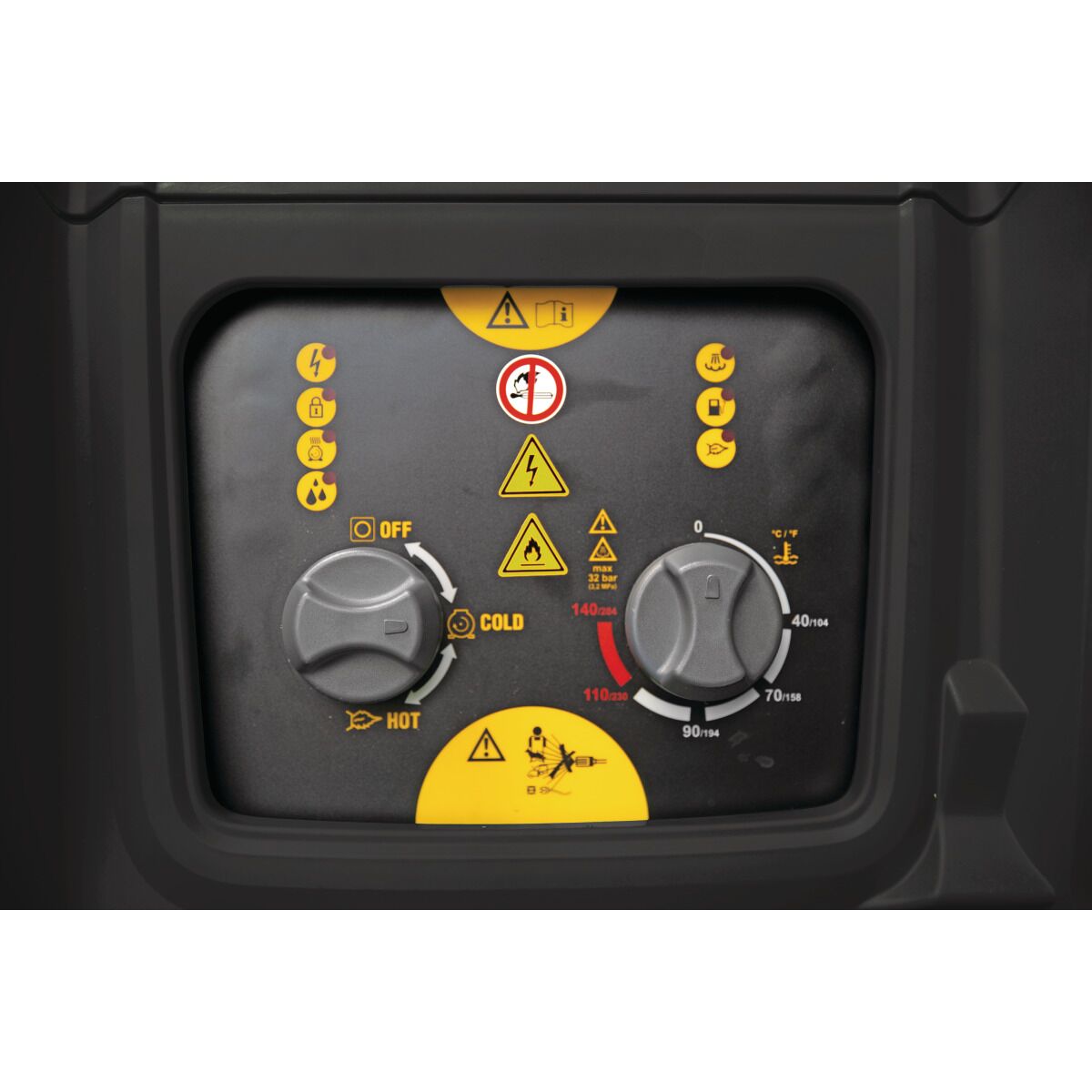 - Arbeitsdruck und Wassertemperatur zur Anpassung an die jeweilige Reinigungsaufgabe regulierbar