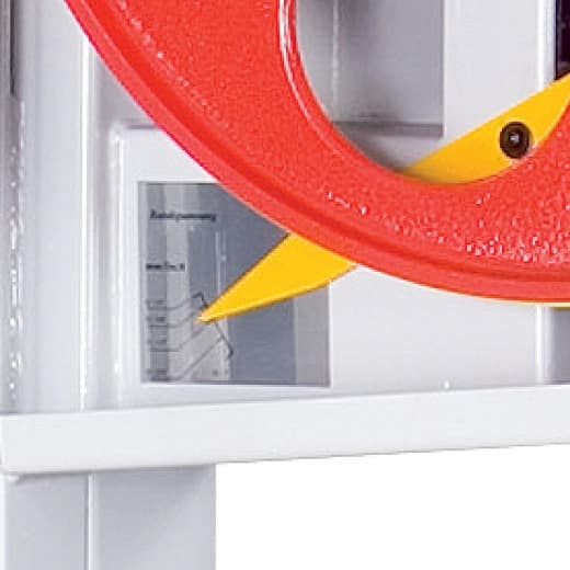 - Schnelle Schnitthöhenverstellung über Drehknopf und Zahnstange mit Millimeterskala