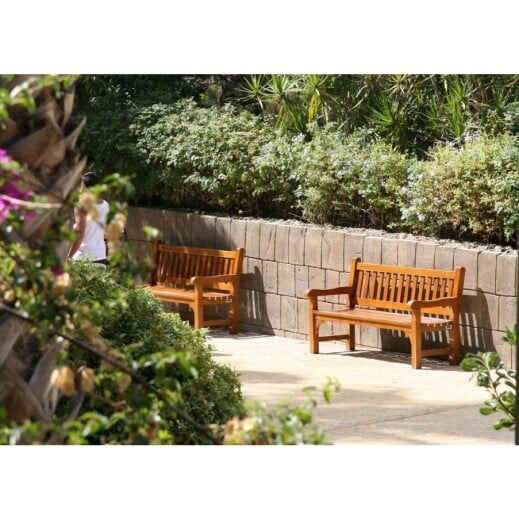 Bank aus Hartholz mit drei Schichten Lignus-Lasur gegen Insekten- und Pilzbefall. Außerdem ist die Lasur feuchtigkeitsabweisend und bietet ein ein naturfarbenes Finish.