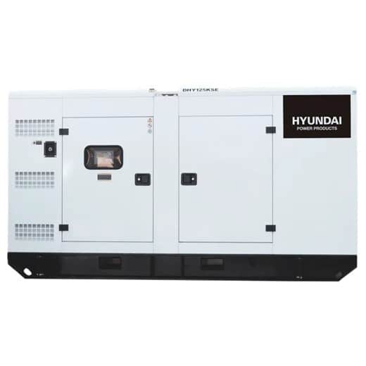 Der HYUNDAI Diesel Generator DHY125KSE ist ein leiser und äußerst zuverlässiger Hyundai Stromerzeuger mit einer Maximalleistung von 125 kVA. Er eignet sich insbesondere für Verwendung als Notstromaggregat für die Absicherung gegen Stromausfall oder auch als Dauerläufer. Der Hyundai Stromaggregat ist ausgestattet mit einem wassergekühlten 140 PS (103kW) starken Dieselantrieb. Der kraftvolle 4 – Takt – 6870cc Hyundai Turbo Dieselmotor hat 4 Zylinder, einen elektrischen Starter und zwei integrierten Batterien. Er wird elektrisch gestartet.