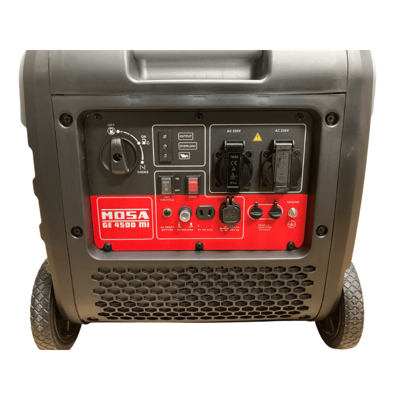 Der MOSA GE 4500MI Generator ist ideal für den Notfall oder wenn einmal keine Stromversorgung vorhanden ist. Der Generator ist mit einem Überlastschutz und einer Motorabschaltung bei niedrigem Ölstand ausgestattet, um die Anwendungssicherheit zu gewährleisten. Der Generator kann auch parallel verwendet werden, sodass er an einen anderen Generator desselben Typ anschließbar ist, um die Leistung zu verdoppeln und die Effizienz zu erhöhen. Zudem besitzt der Generator zwei Steckdosen mit 230 V (16 A) Haushaltsspannung, zwei USB-Anschlüsse sowie eine 12 V (5 A) Batterieladebuchs.
