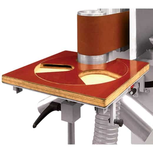 - Höhenverstellbarer Zusatztisch mit Absaugung zum Schleifen von Radien