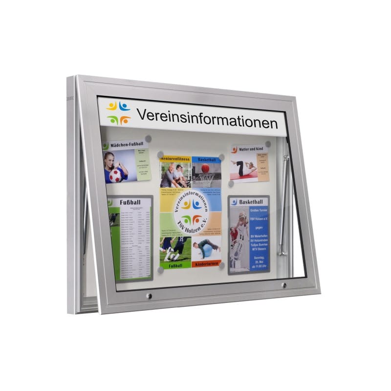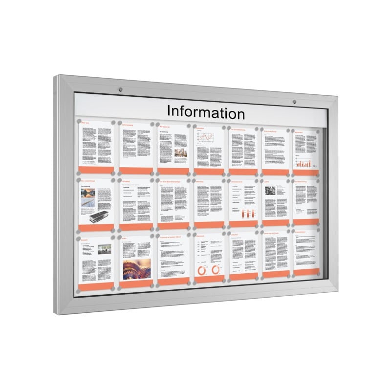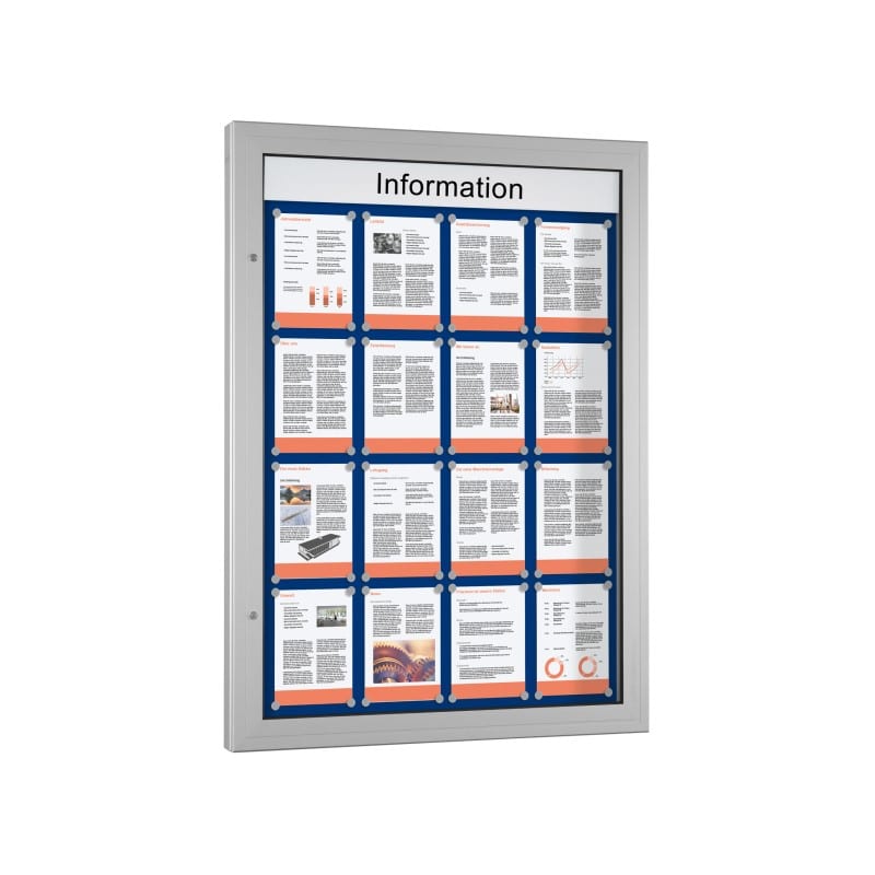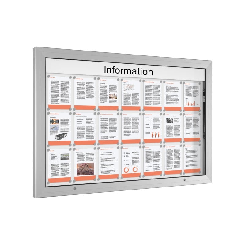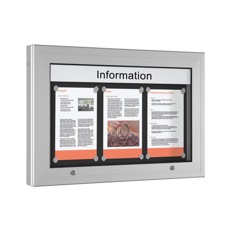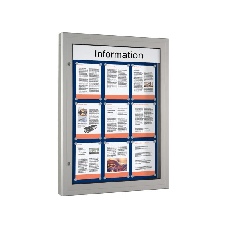 Der Kantline-Schaukasten ist der klassische Schaukasten für den Außenbereich aus silberfarbig eloxiertem Aluminium und besticht durch das breite, kantige Design und höchste Qualität. Der Flügel schließt bündig mit dem Rahmen ab. Der abschließbare Schaukasten ist vielseitig einsetzbar, ein markanter Klassiker, der jedem Wetter standhält und Informationen, Poster und Aushänge ansprechend präsentiert.