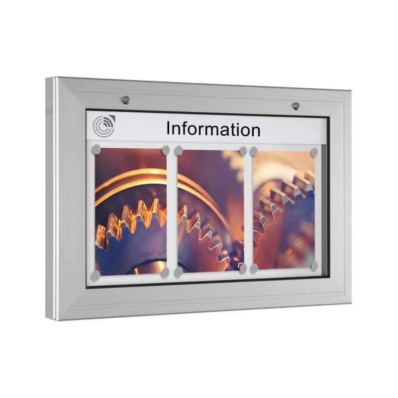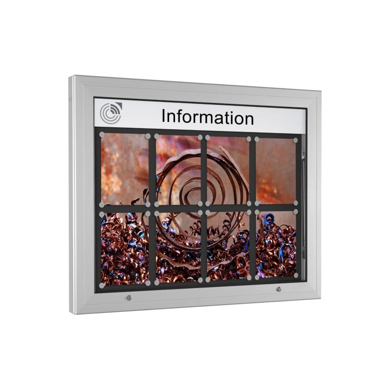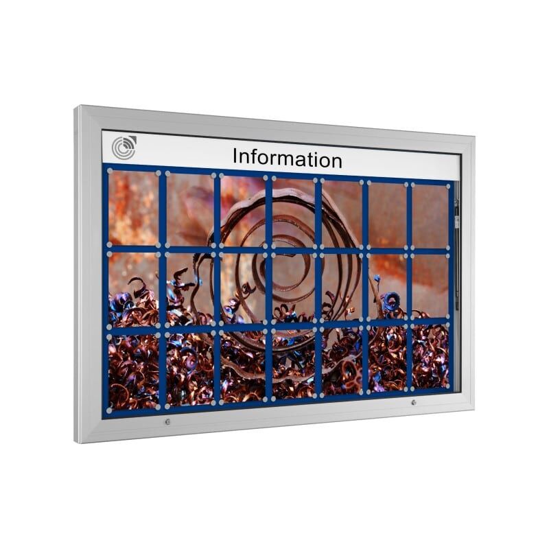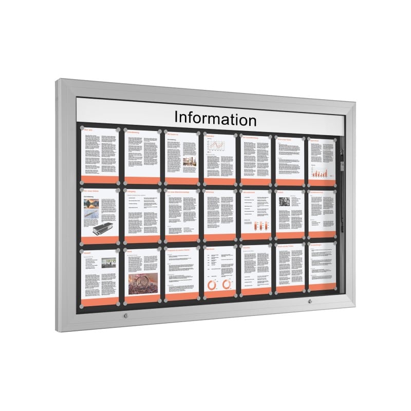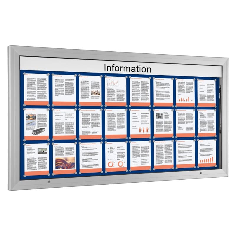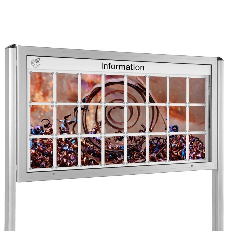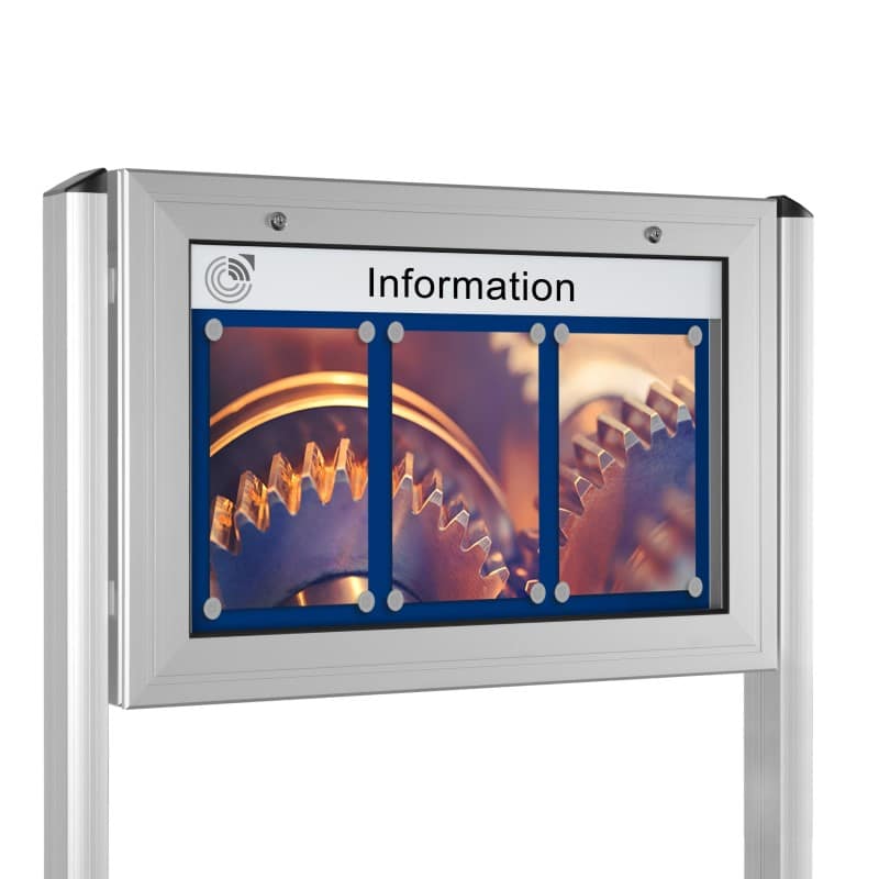 Der Kantline-Schaukasten ist der klassische Schaukasten für den Außenbereich aus silberfarbig eloxiertem Aluminium und besticht durch das breite, kantige Design und höchste Qualität. Der Flügel schließt bündig mit dem Rahmen ab. Der abschließbare Schaukasten ist vielseitig einsetzbar, ein markanter Klassiker, der jedem Wetter standhält und Informationen, Poster und Aushänge ansprechend präsentiert.