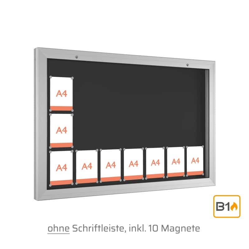 Gratis erhalten Sie bei jeder Bestellung eines Schaukastens eine magnethaftende Einstecktasche und zehn graue Magnete.