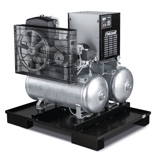 - Zweistufig verdichtendes 2-Zylinder-Hochleistungsaggregat mit Grauguss-Zylinderblock