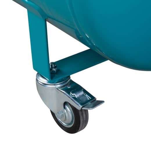 - Behälterbasis durch 2 Räder mit PU-Schaumbereifung und 2 Lenkrollen mit Feststellbremse