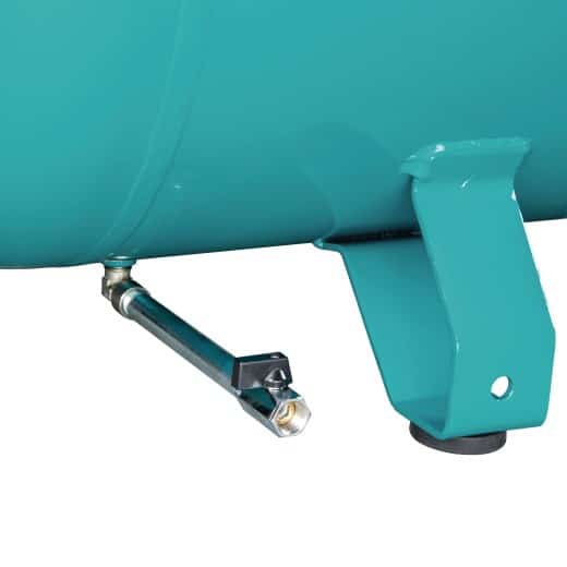 - Ausgestattet mit einem Manometer für Behälterdruck und einem Kugelhahn am Druckluftbehälter
