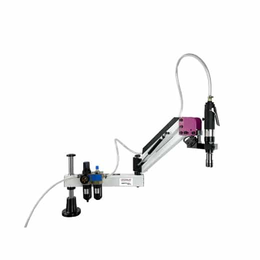 - Inklusive Schwenkarm mit großem Radius für einfaches Positionieren des Gewindebohrers am Werkstück