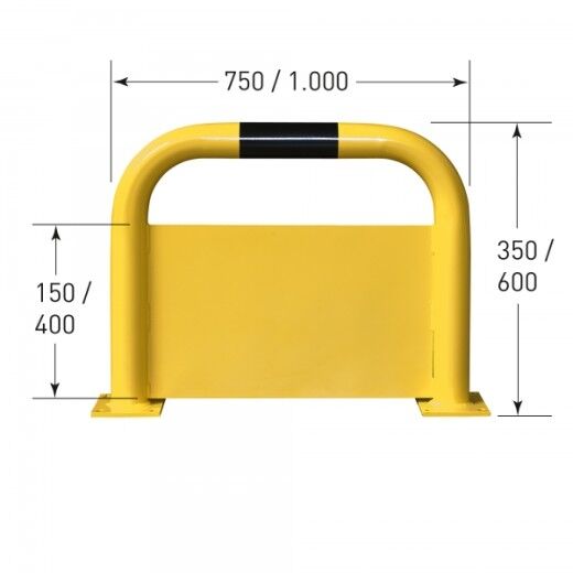 - Zwei Höhen: 350 (Unterfahrschutz 150 mm Höhe) oder 600 mm (Unterfahrschutz 400 mm Höhe)