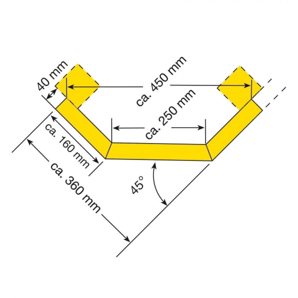 Raumsparendes, abgewinkeltes 2-x-45°-Eckprofil. Reduziert die Wahrscheinlichkeit von Kollisionen in beengten Bereichen und dient der allgemeinen Unfallverhütung, da keine spitzen Ecken vorhanden sind.
