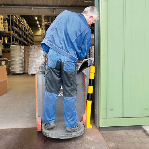 Bewährtes Material in neuer Anwendung: Der Rammschutz-Poller FLEX ist ein nachgebender Poller aus hochwertigem Kunststoff (TPU). Flexibel und trotzdem formstabil. Durch die klassische Formgebung erscheint er wie ein herkömmlicher Stahlpoller, dessen nachgebende Eigenschaft erst beim Anfahren erkennbar wird. Nimmt Anfahrkräfte auf, schont Fahrzeug und Poller. Besonders geeignet in engen Verkehrsräumen.