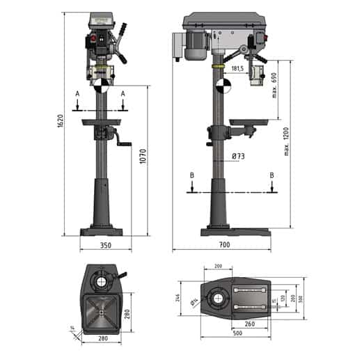- Bohrtisch Arbeitsfläche Breite 280 mm
