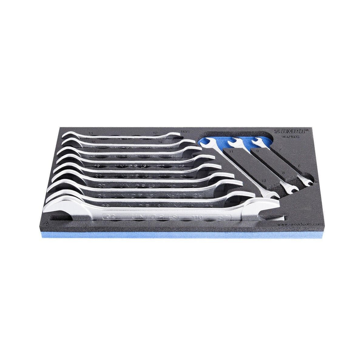 - 12x Doppelgabelschlüssel Dim. 6×7, 8×9, 10×11, 12×13, 14×15, 16×17, 18×19, 20×22, 21×23, 24×26, 25×28, 27×32
