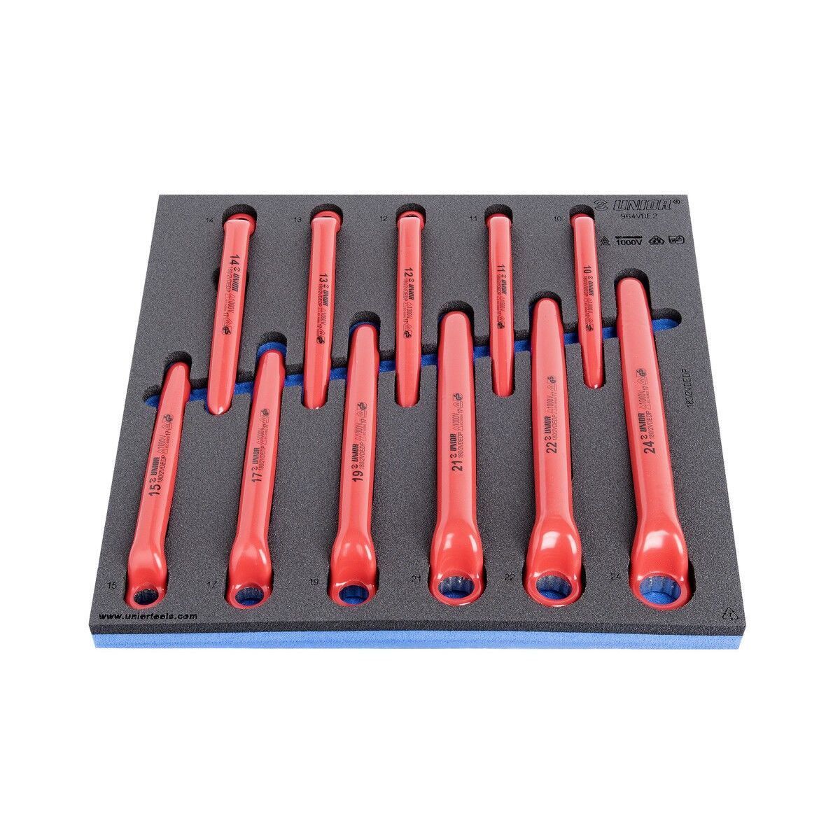 - 11x Einringschlüssel, Schutzsoliert Dim. 10, 11, 12, 13, 14, 15, 17, 19, 21, 22, 24