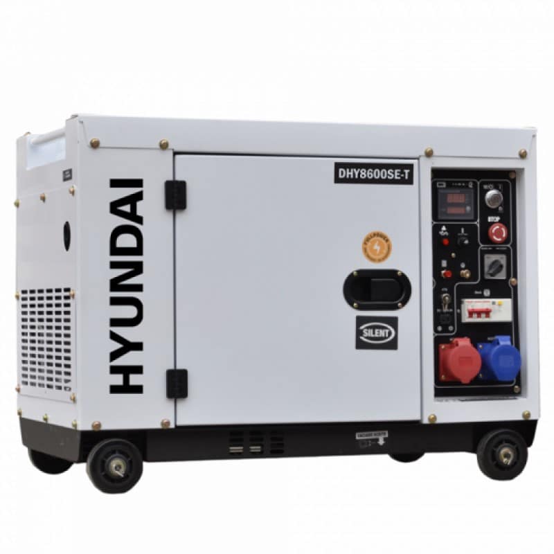 Der HYUNDAI Diesel Generator DHY8600SE-T D ist ein besonders leiser und äußerst zuverlässiger Stromerzeuger von Hyundai, der mit einer Maximalleistung von 7,9 kVA und 230V/400V Anschlüssen überzeugt. Er eignet sich ideal als Notstromaggregat zum Schutz vor Stromausfällen oder als Generator auf Baustellen. Das schallisolierende Gehäuse des Generators verringert die Geräuschemissionen erheblich und schützt die Umgebung vor unnötigem Lärm.