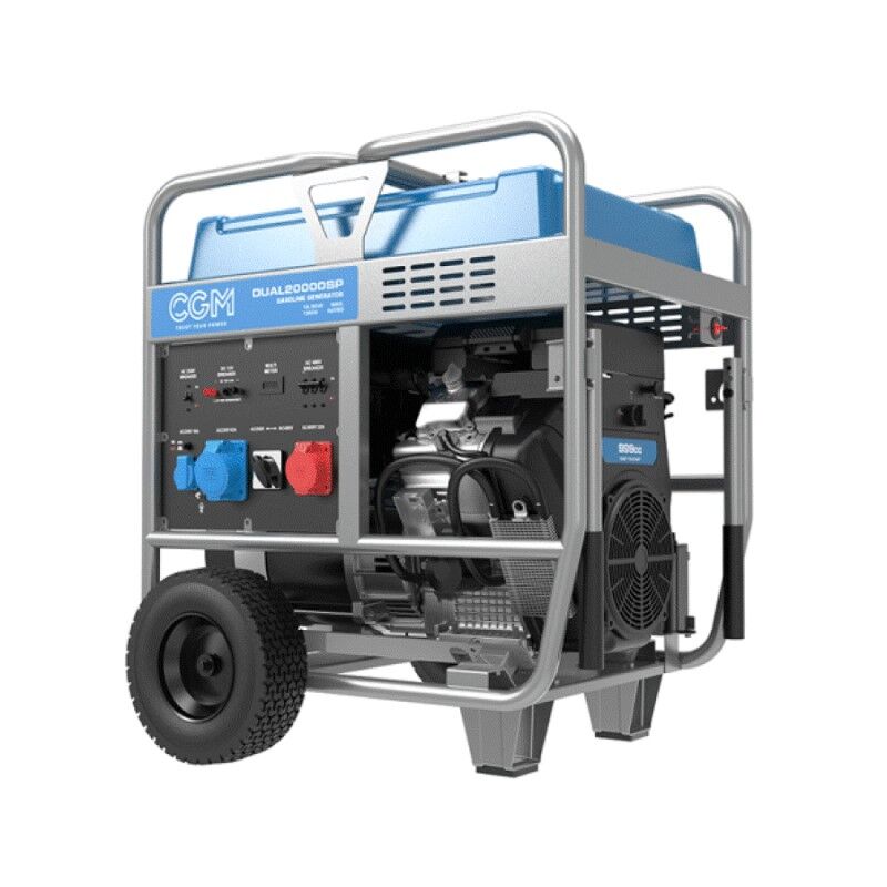 Der Stromerzeuger Dual 20000SP ist ein zuverlässiges Benzin Notstromaggregat mit Elektrostartsystem von CGM. Der Generator ist ein neues Modell, mit einem einzigartigen DUAL-Schalter, der zwischen 400 V und 230 V wechselt. Das bedeutet, dass Sie die volle Leistung entweder aus 1 oder 3 Phasen erhalten. Zur weiteren serienmäßigen Ausstattung gehört der elektronisch geregelten Generator, kurz AVR- Regler, ein Radsatz mit Klappgriffen und der Stundenzähler. Nützliche Optionen wie Abgasschlauch und Verlängerungskabel runden unser Angebot ab.