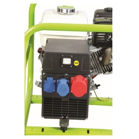 Der Standard-Profi Stromerzeuger Pramac E5000 THI mit seinen robusten Stahlrohrrahmen bietet höchste Zuverlässigkeit und Effizienz. Die Steckdosen 230V/400V mit Schutzart IP44 sind thermisch gesichert. Der Stromerzeuger Pramac E5000THI ist mit einem Honda Motor GX270 ausgestattet welcher über einen Seilzug gestartet wird. Durch die Ölmangel-Abschaltautomatik wird der Motor vor einem zu geringem Ölstand geschützt. Kombiniert mit einem Radsatz mit Festen- oder Klappgriffen, welche als Option erhältlich ist, kann der Stromerzeuger problemlos alleine im Gelände bewegt werden. Nützliche Optionen wie Abgasschlauch und Verlängerungskabel runden unser Angebot ab.