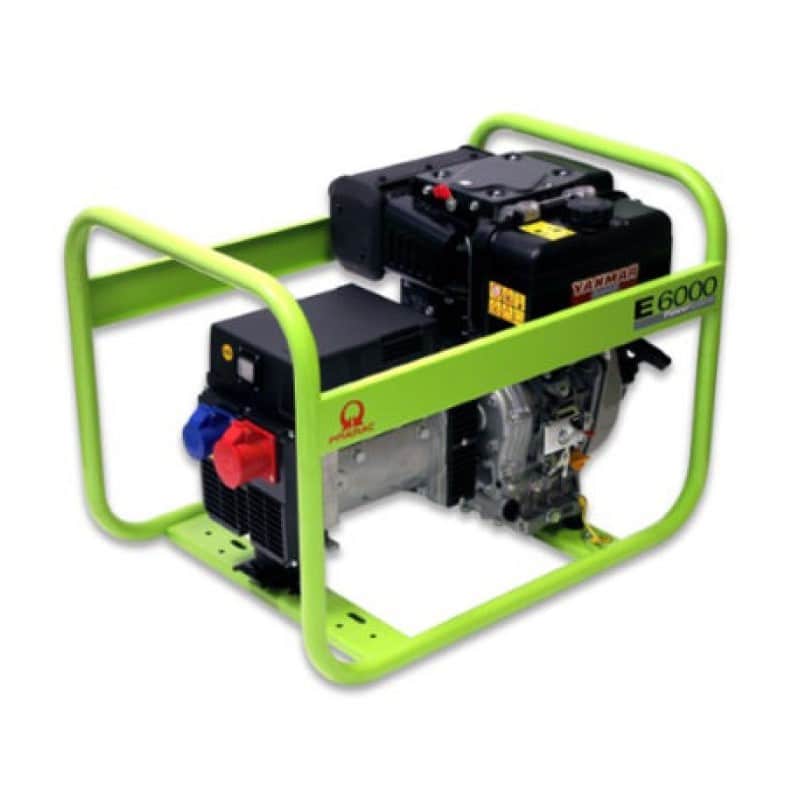 Der Standartprofi Stromerzeuger Pramac E6000 TYH bietet mit seinen robusten Stahlrohrrahmen höchste Zuverlässigkeit und Effizienz. Die Steckdosen 230V / 400V sind thermisch gesichert. Das Notstromaggregat ist mit einem luftgekühlten Yanmar Diesel Motor L100N ausgestattet und wird sehr leicht und zuverlässig über einen Seilzug gestartet. Kombiniert mit einem Radsatz mit Festen- oder Klappgriffen, welche als Option erhältlich ist, kann das Stromaggregat von Pramac problemlos allein im Gelände bewegt werden. SYNCHRON-Generatoren (PRAMAC) sind kurzfristig um bis zu 3-fach überlastbar und damit auch geeignet für Profiwerkzeuge mit Elektromotoren, die hohe Anlaufströme benötigen, wie z.B. Bohrhammer und Winkelschleifer. Nützliche Optionen wie Abgasschlauch und Verlängerungskabel runden unser Angebot ab.