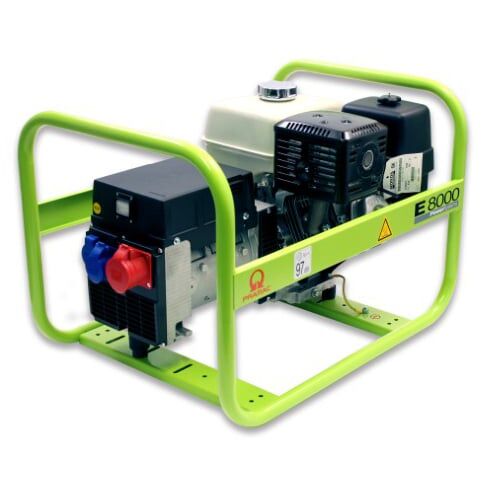 Der Standard-Profi Stromerzeuger Pramac E8000 THI mit seinen robusten Stahlrohrrahmen bietet höchste Zuverlässigkeit und Effizienz. Die Steckdosen 230V/400V mit Schutzart IP44 sind thermisch gesichert. Der Stromerzeuger Pramac E8000THI ist mit einem Honda Motor GX390 ausgestattet welcher über einen Seilzug gestartet wird. Durch die Ölmangel-Abschaltautomatik wird der Motor vor einem zu geringem Ölstand geschützt. Kombiniert mit einem Radsatz mit Festen- oder Klappgriffen, welche als Option erhältlich ist, kann der Stromerzeuger problemlos allein im Gelände bewegt werden. Nützliche Optionen wie Abgasschlauch und Verlängerungskabel runden unser Angebot ab.