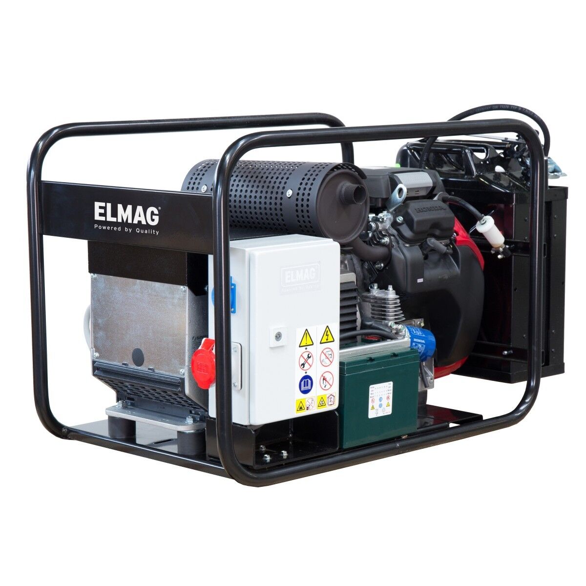 - Anschlüsse: 1x 230 V Schuko 16 A und 1x 400 V CEE 16A-5p