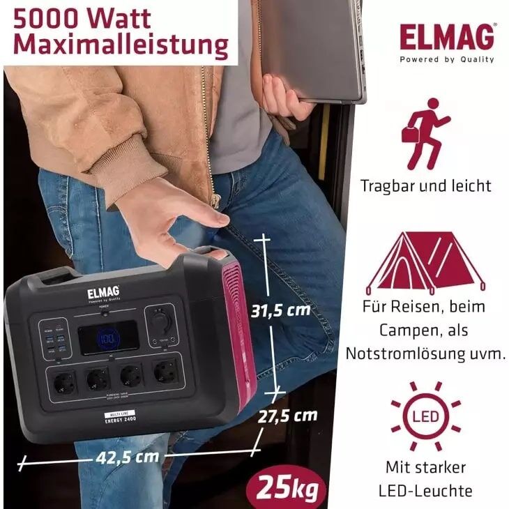 Die neue Serie ENERGY umfasst 4 Leistungsgrößen von tragbaren Powerstations für eine netzunabhängige Strom- sowie Notstromversorgung ihrer Verbraucher. Das umfangreiche Einsatzgebiet umfasst alle Anwendungsbereiche. Egal ob beim Camping, auf Festivals, als Stromquelle für Verkaufsstände oder auch als autarke Notstromlösung im Blackout-Fall, die ELMAG Powerstations sind immer ihr verlässlicher Begleiter.