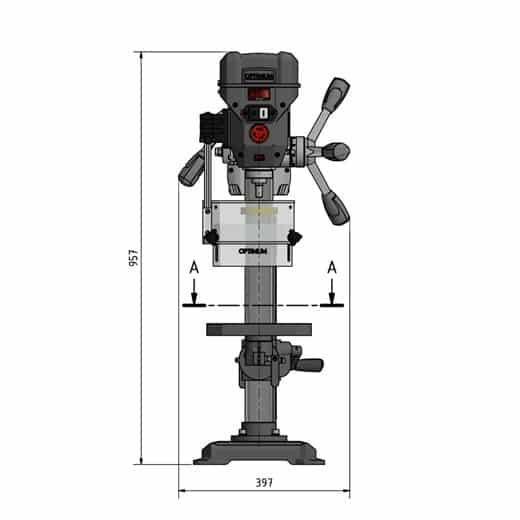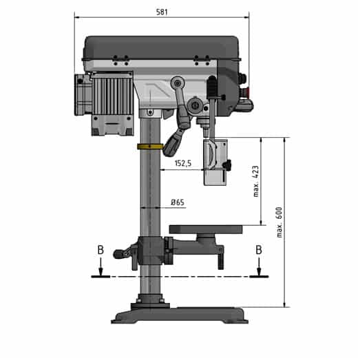 - Abstand Spindel – Bohrtisch max. 423 mm