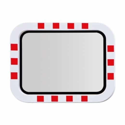 - Weißer Kunststoffrahmen (ABS) mit roten, retroreflektierenden 3M-Reflexstreifen