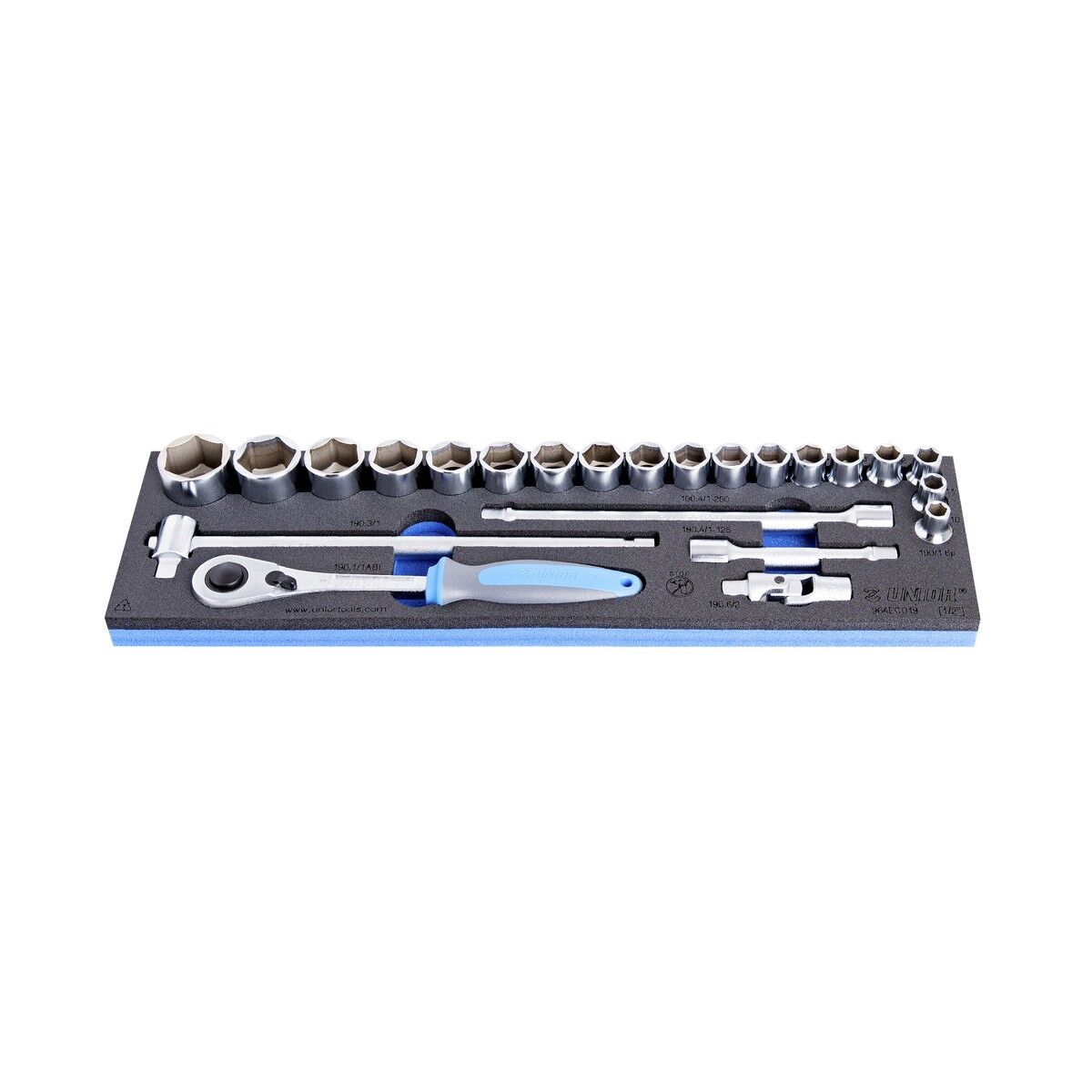 Zubehör 1/2″; 1x Gleitgriff, 2x Verlängerung (125, 250mm), 1x Kardangelenk