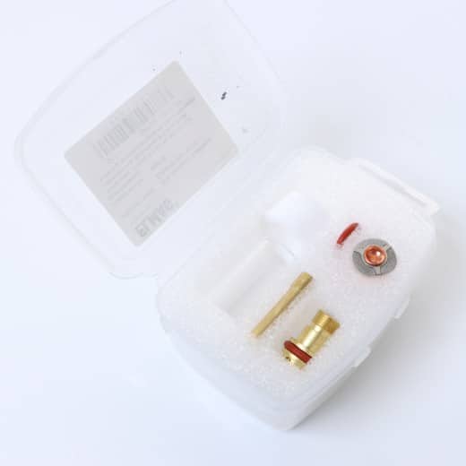 transparent, (5-teilig) 2,4 mm für SR 17/18/26, bestehend aus: Spannhülse Ø 2,4mm ‘MINI’ (59484), Isolierring (59431), Spannhülsengehäuse 1,6-3,2 mm ‘MINI’ (59477), Gaslinse Ø 2,4mm (59441), Gashülse transparent L=32,5mm ‘MINI’ (59476)